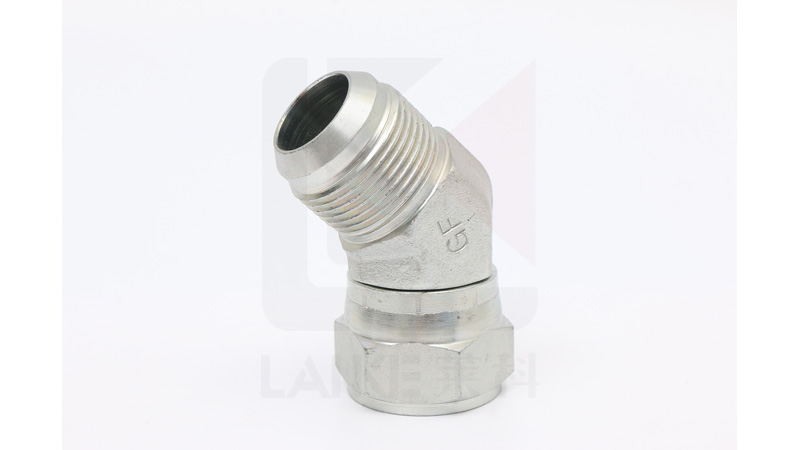 The 37° JIC male to 27° JIC female swivel 45° elbow adapter 6502 or 2J4 provide strong and reliable connection in hydraulic system